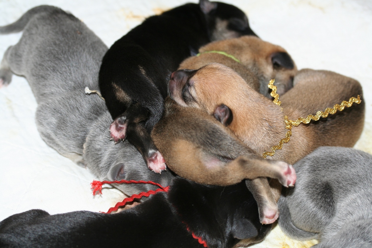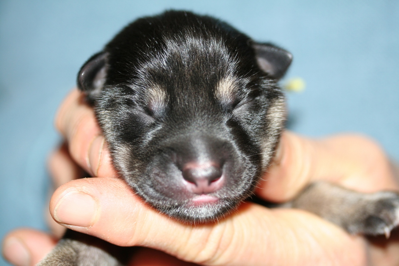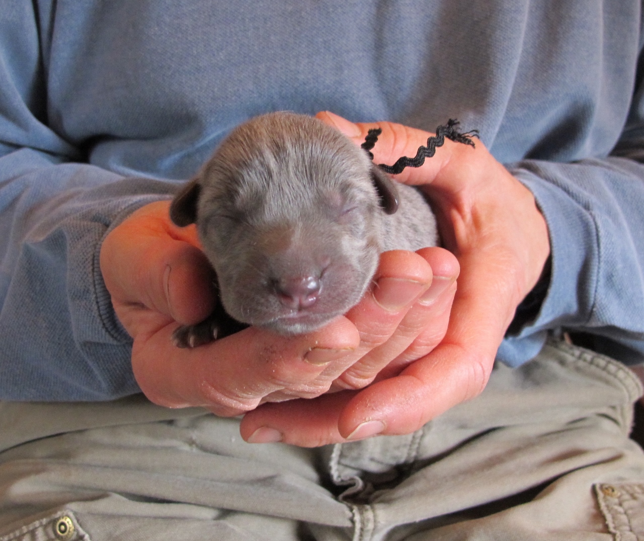 The end of the second week has been marked by big changes for the puppies. The eyes of all the pups are now fully open. This has encouraged them to start to interact with their litter mates, and explore the limits of the whelping box. More and more they rise up on all wobbly four legs and attempt to walk, only to fall into a heap. They endure nail trimming, grooming, photo shoots, and other little stresses with copious amounts of squealing. Enjoy the sometimes blurry images that mark their second week and see how much they have grown.
