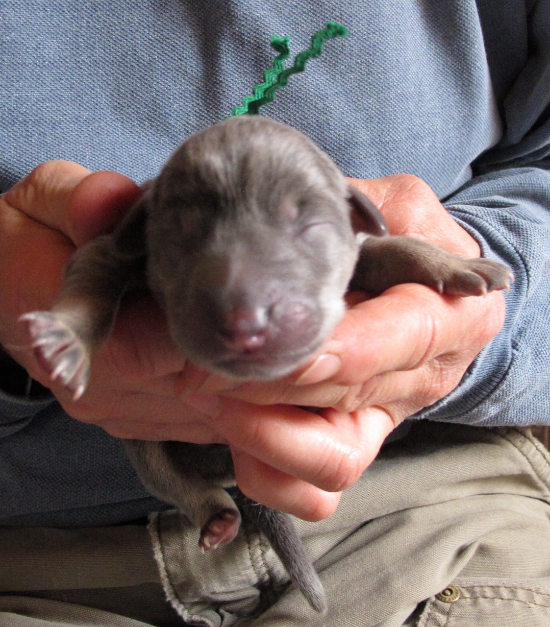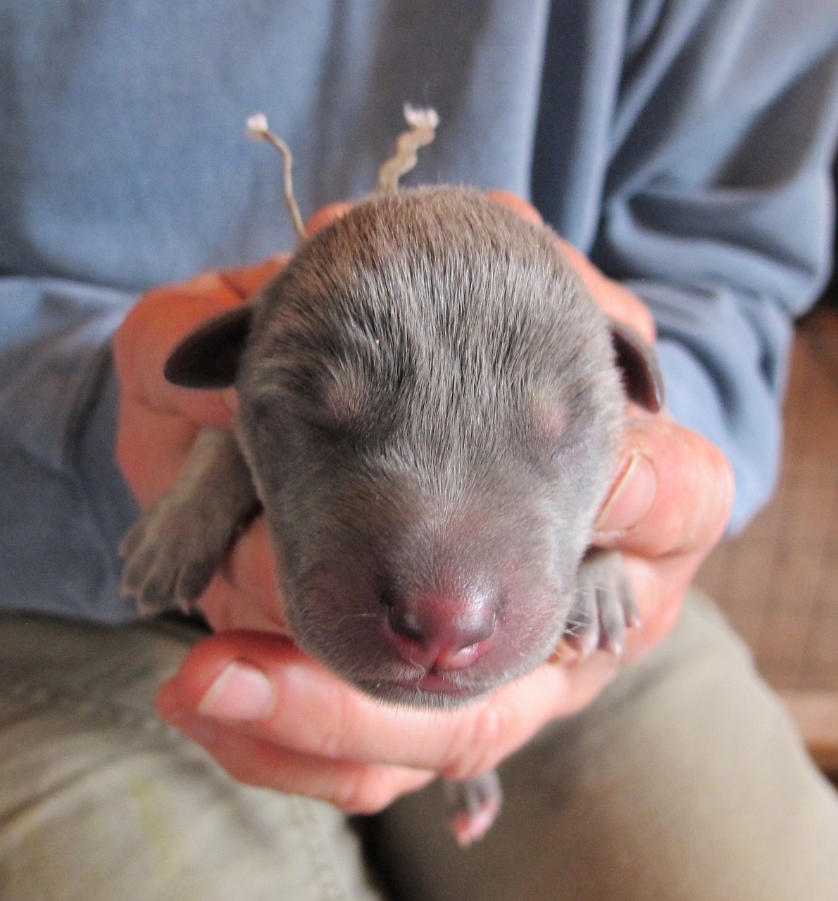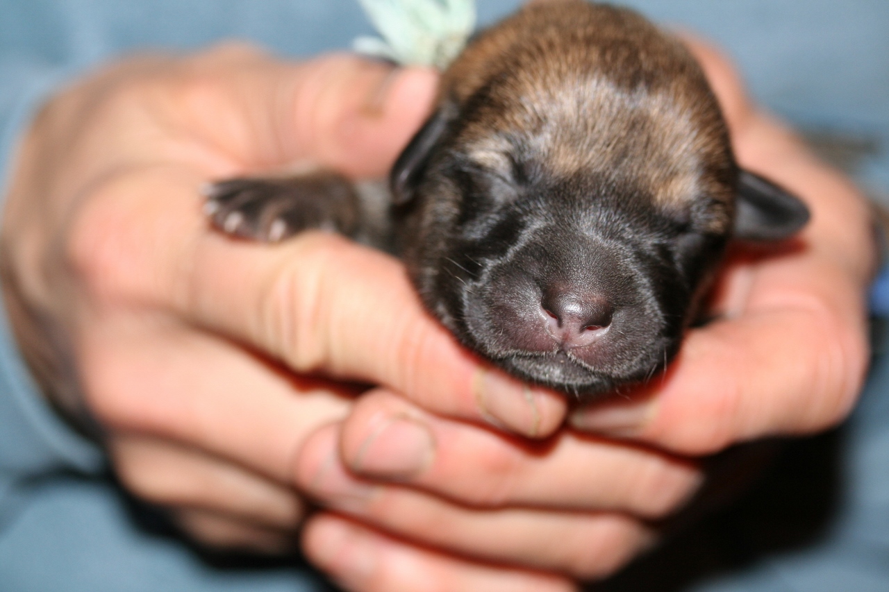 The end of the second week has been marked by big changes for the puppies. The eyes of all the pups are now fully open. This has encouraged them to start to interact with their litter mates, and explore the limits of the whelping box. More and more they rise up on all wobbly four legs and attempt to walk, only to fall into a heap. They endure nail trimming, grooming, photo shoots, and other little stresses with copious amounts of squealing. Enjoy the sometimes blurry images that mark their second week and see how much they have grown.