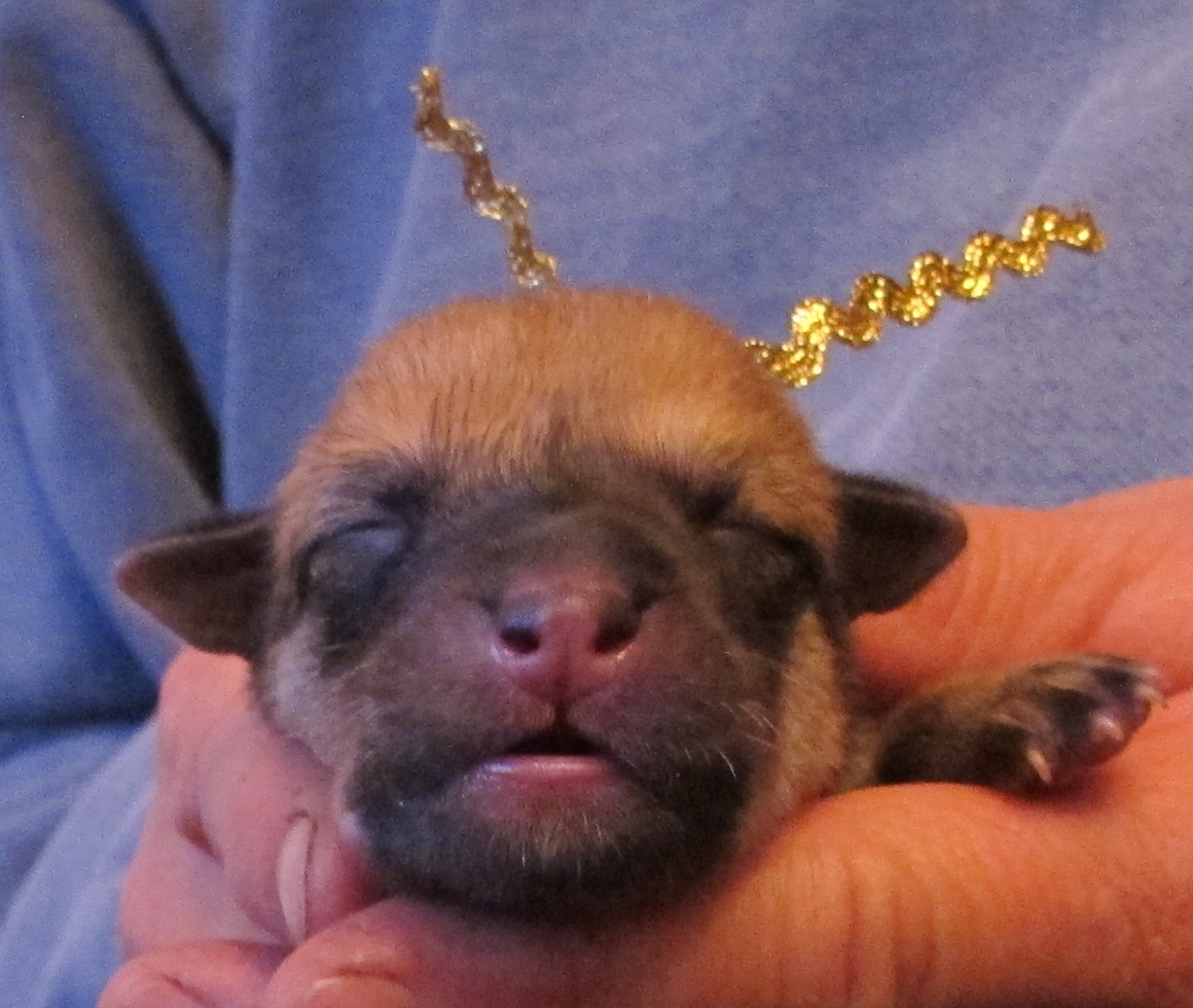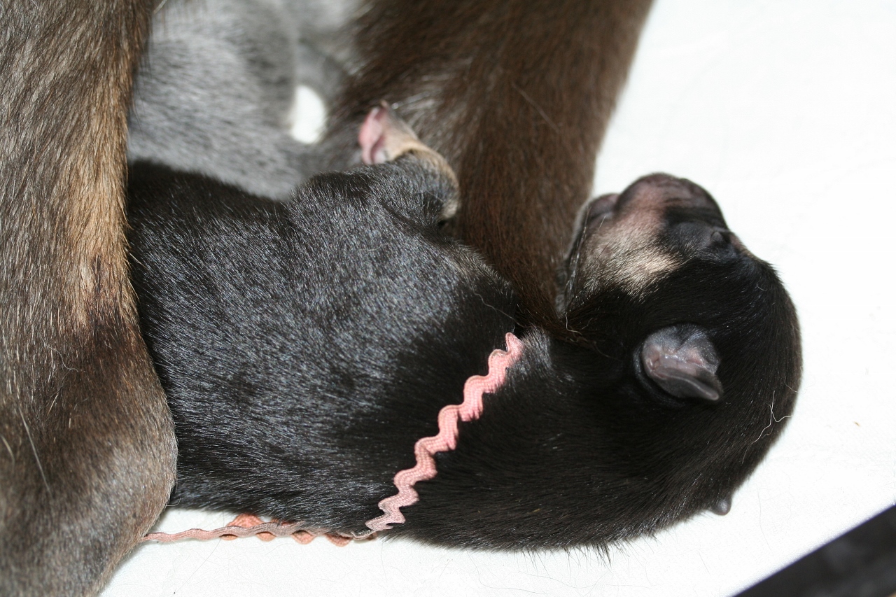 Female Birth Weight 11.1 oz. Tawny with dark mask and ears Gold Collar