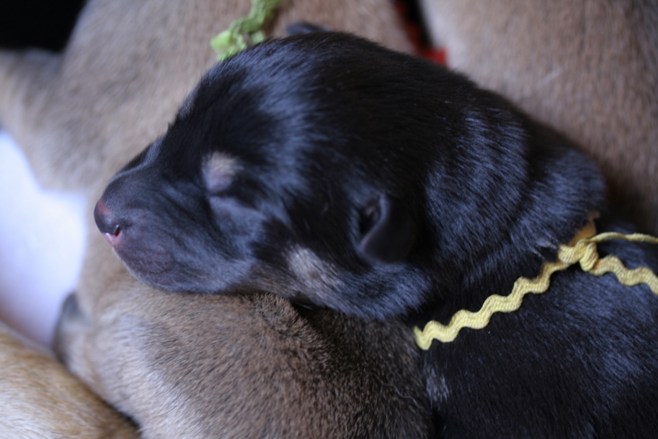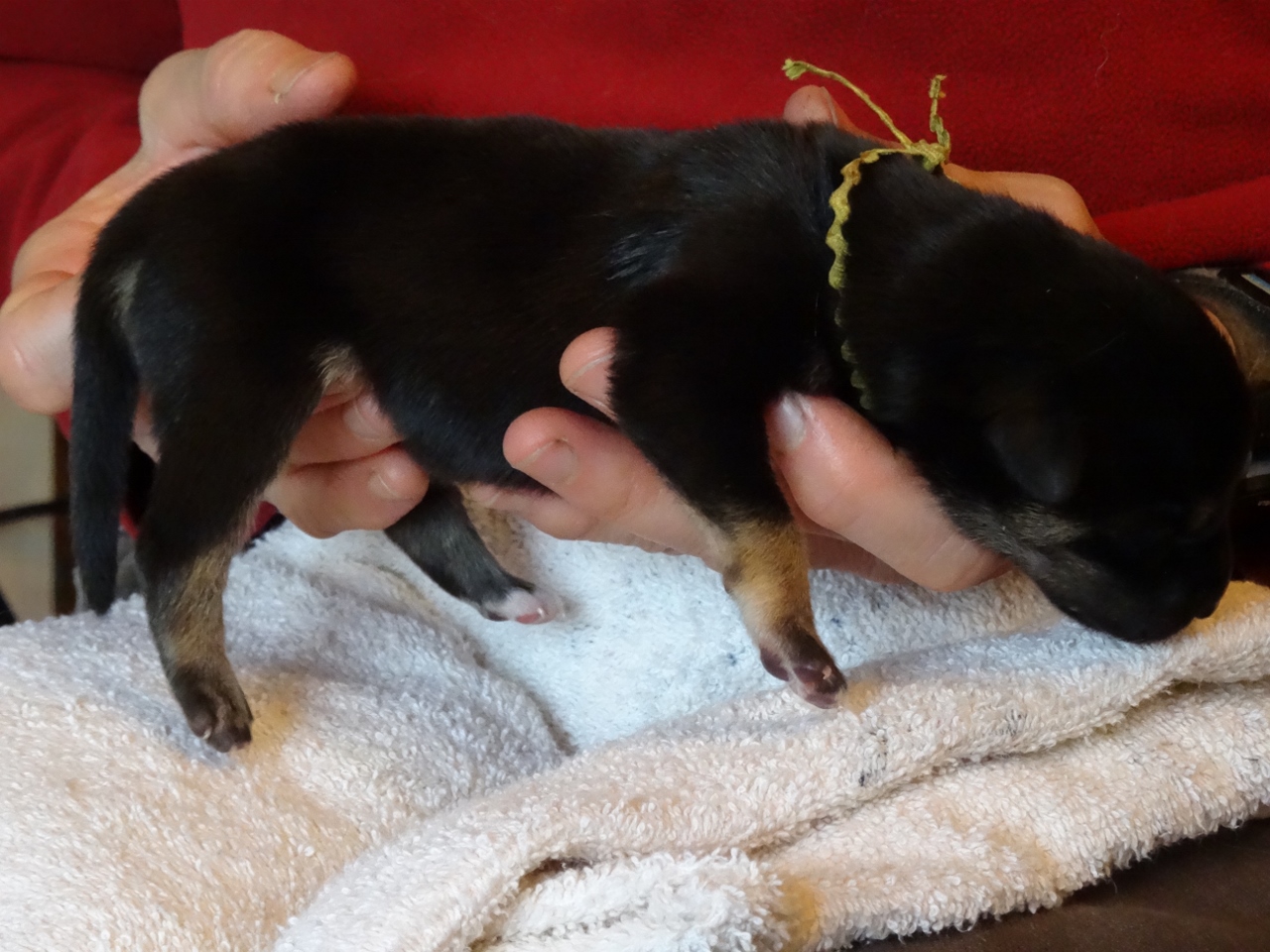 Female Birth Weight 12.8 oz Black and Tan Yellow Collar