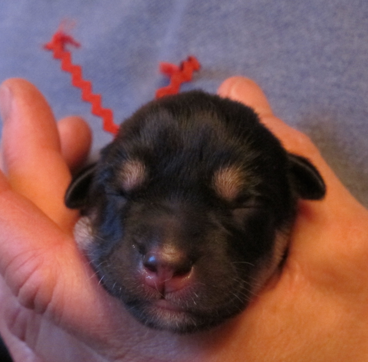 Male Birth Weight 13.1 oz Black and Tan Red Collar