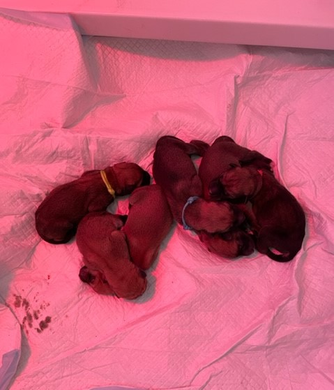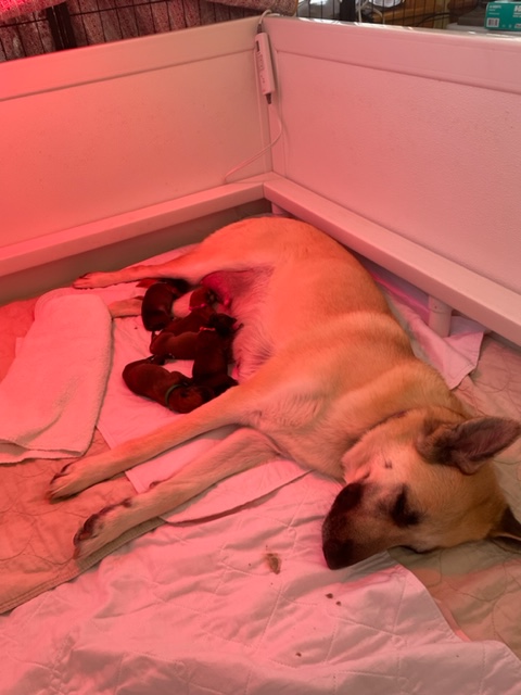 The Triple Crown Litter arrived today, Feb. 26, 2022. On February 27, 2022 By thewoodmistress Guen and Solo are the proud parents of 6 tawny Chinook puppies, three boys and three girls. By all reports, mom and puppies are all doing well.