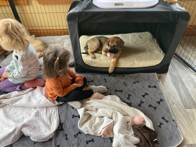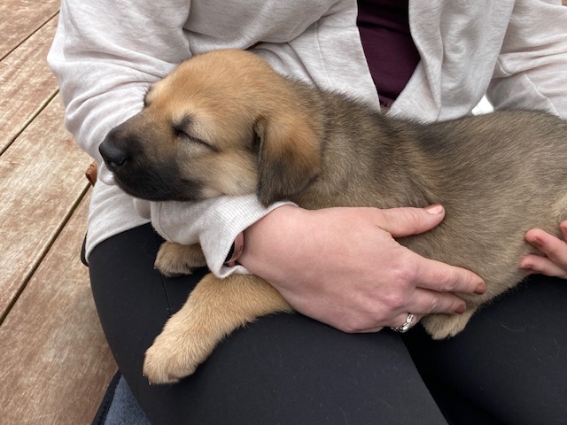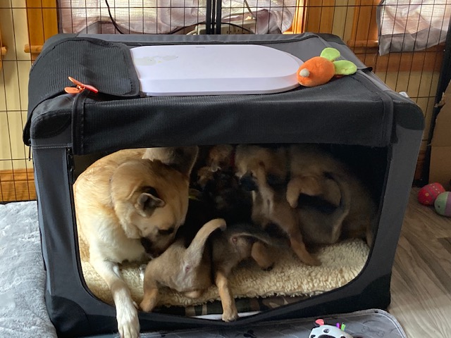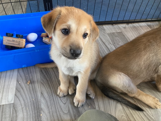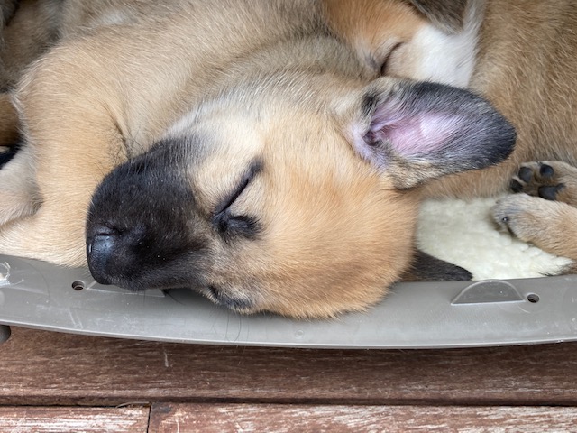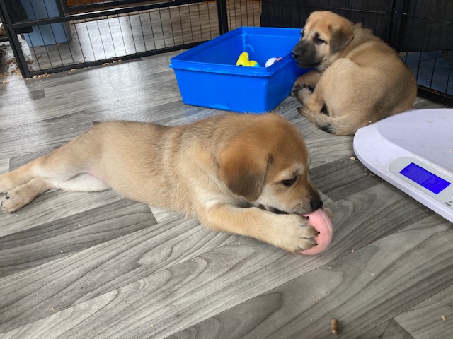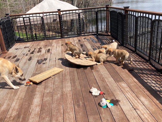 The puppies turned 8 weeks old on Saturday, and two (Alydar and Ruffian) had already headed to their forever homes by the time I arrived. Kincsem and Kelso left with their families a little later, while Seabiscuit and Zanyatta settled in for another week before they go to their homes. They all have been handling their dwindling pack size very well, and by all reports, the pups in their new homes have been doing great! They certainly grew a lot in the less than two weeks since my previous visit. Here are a few photos for you to enjoy from Saturday. I want to thank Donna and Peter Russell of Wachusett Chinooks for doing such a great job raising these fabulous group of puppies. We look forward to watching them grow and develop.