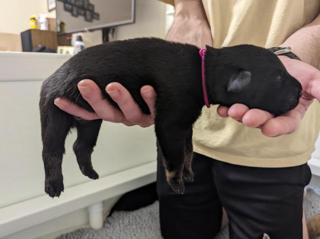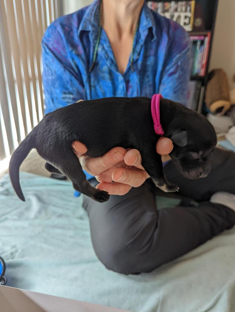 McClain (Lainey) Female Weight 27.69 oz. Black and Tan Pink Collar