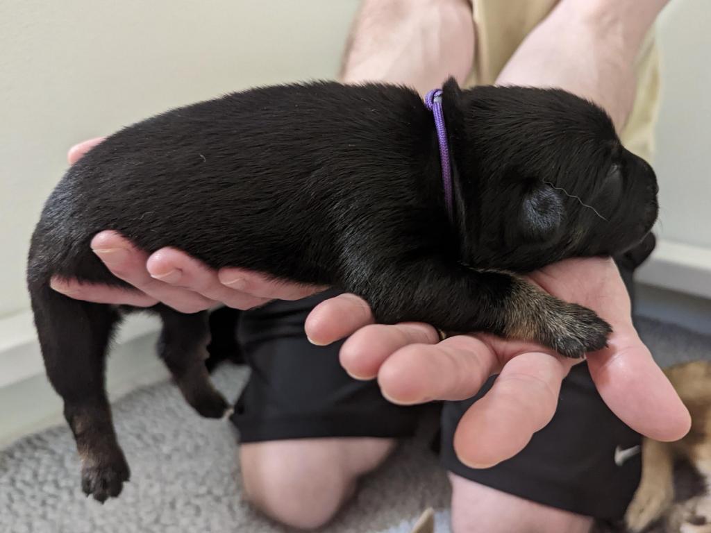Holland (Holly) Female Weight 27.69 oz. Black and Tan Purple Collar