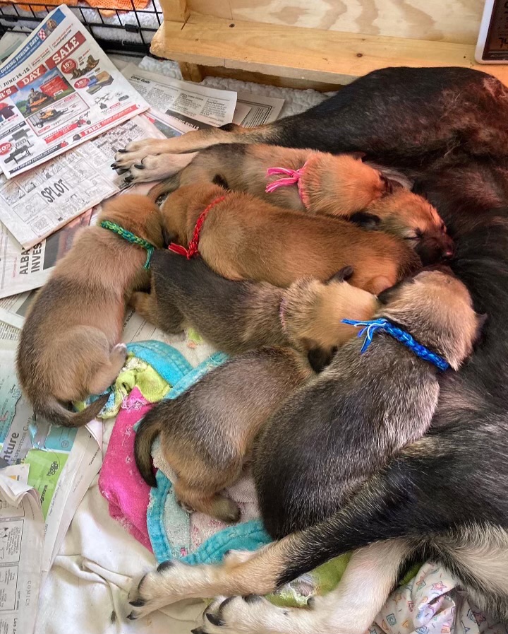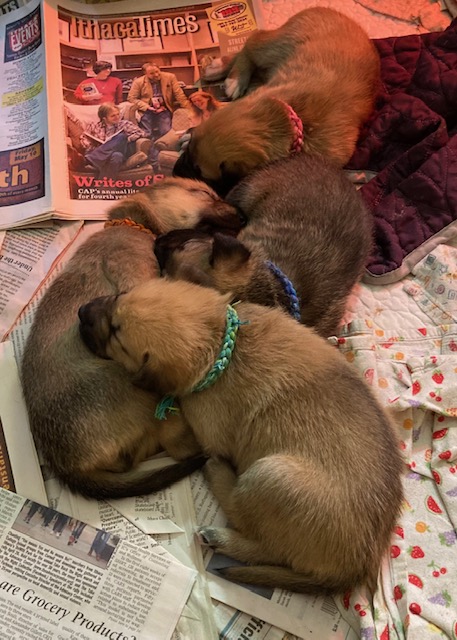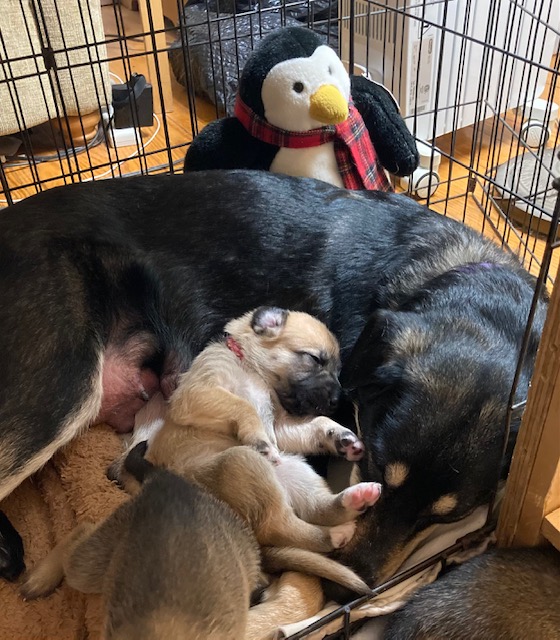 Boys rule in this litter with 5 boys and 2 girls, whelped on December 18, 2022. All the pups and momma Simonie and doing well. Rivertrail Chinooks is raising this litter in Ithaca, NY. Simonie is from the Closer to Home Litter of 2019. Here is a collection of photos of the pups. They can also be followed on Instagram under rivertrail_chinooks.