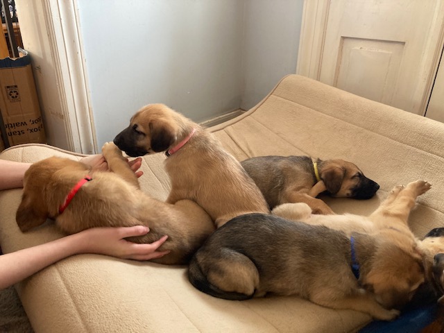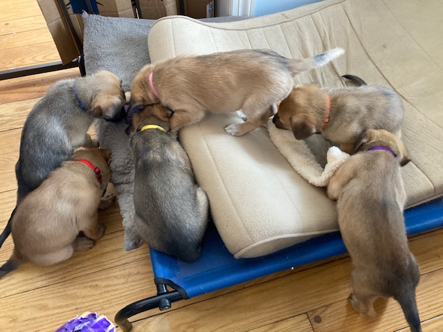 Pups have had a lot of visitors, including me! Such fun to meet them and get to know them a bit in person. They are growing fast! Now that the deep freeze is over, they got to spend time outside in the snow and absolutely loved it! Here are a few photos of the gang.