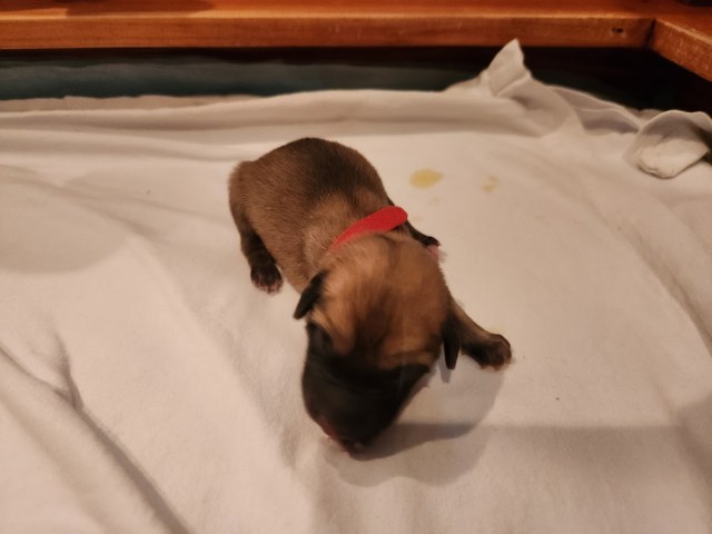 Berk (Berkshire East) Male Red Collar 6.79 lbs. He is not really sad. It was the best photo we could get of the busy boy.