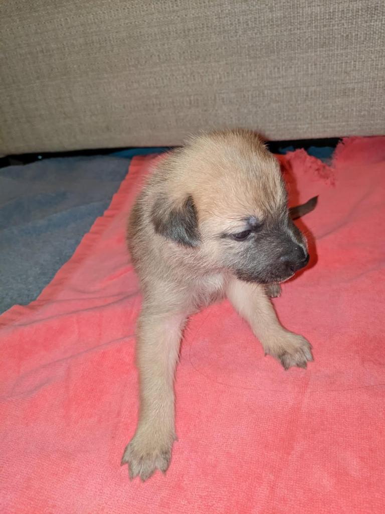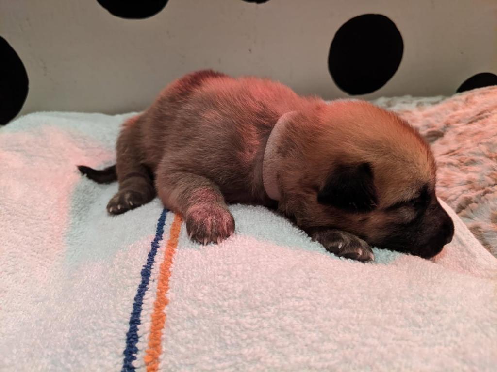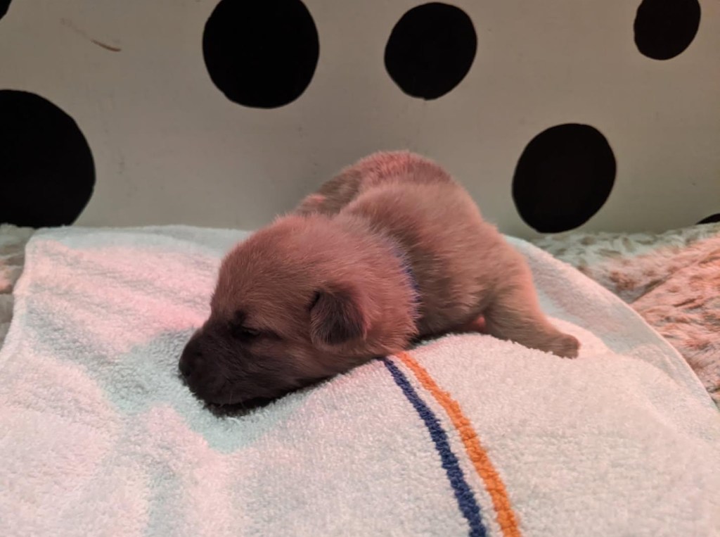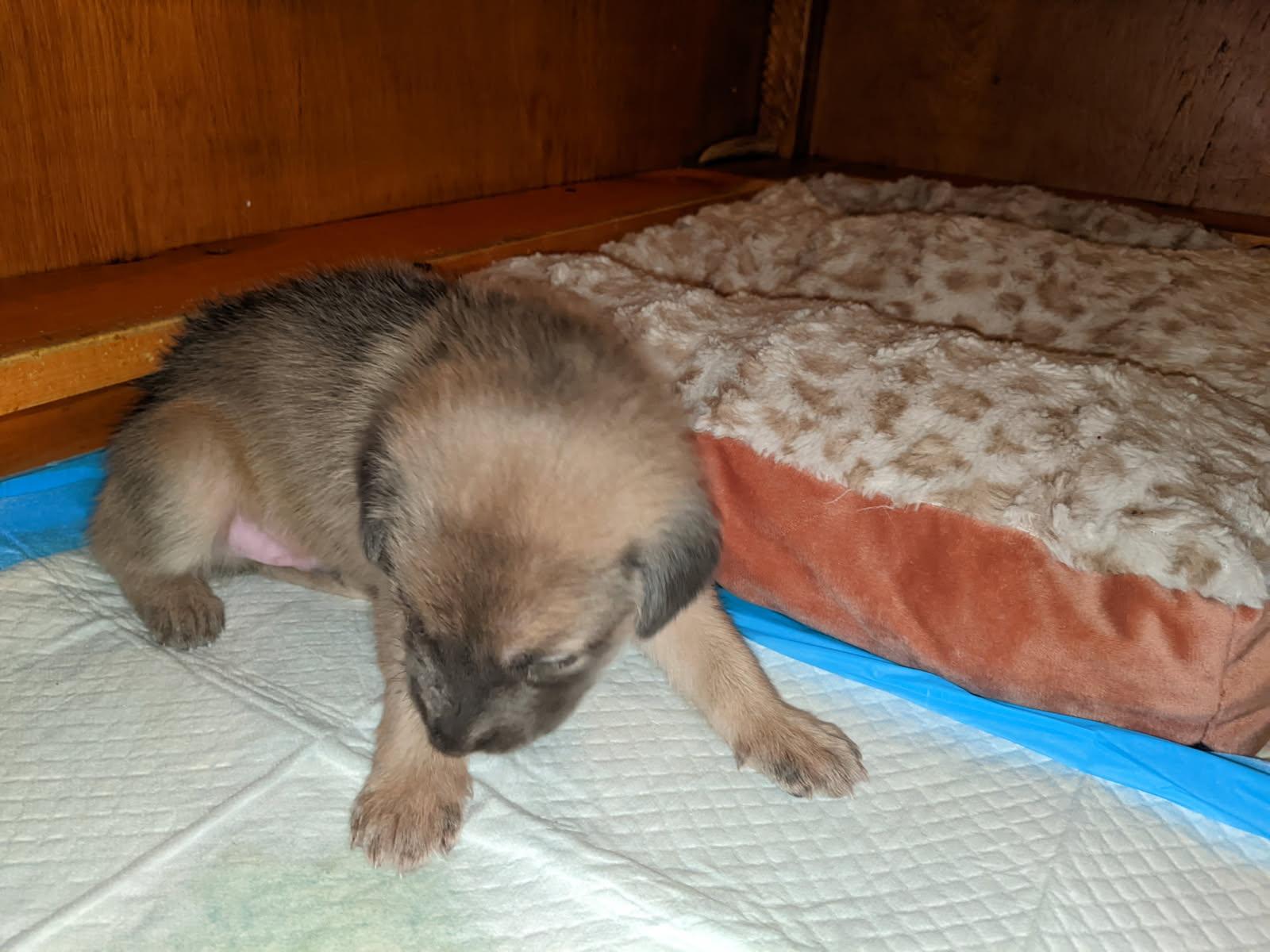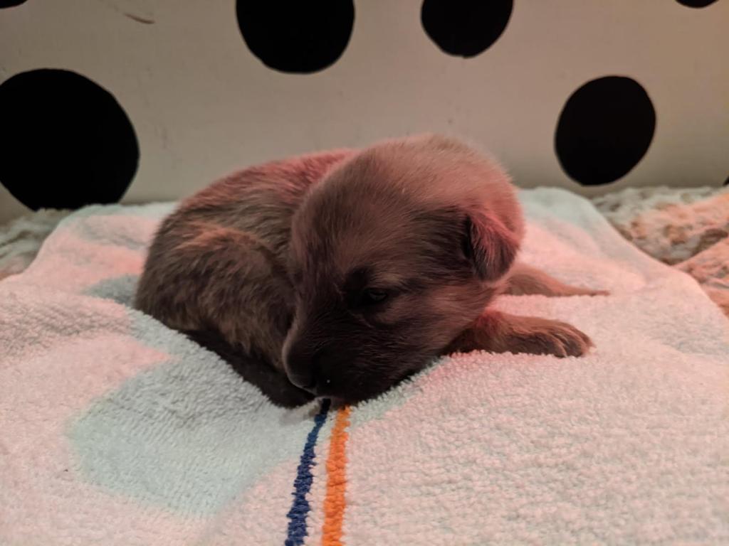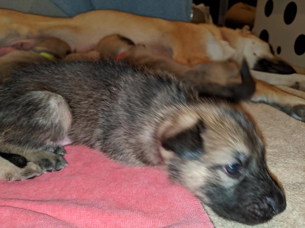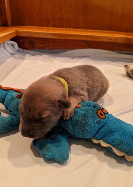 Eyes are open and they are on the move! Please forgive the sometimes-blurry photos but they are hard to pin down unless they are asleep. Weight gains have been very good. We are starting to see which pups tend to be more laid back and who the adventurous souls are. Here are their individual photos and stats, followed by a gallery of fun photos. We are still looking for a couple of forever homes.