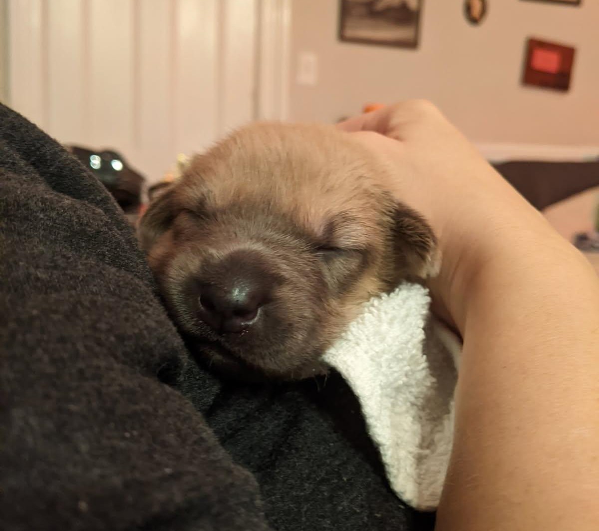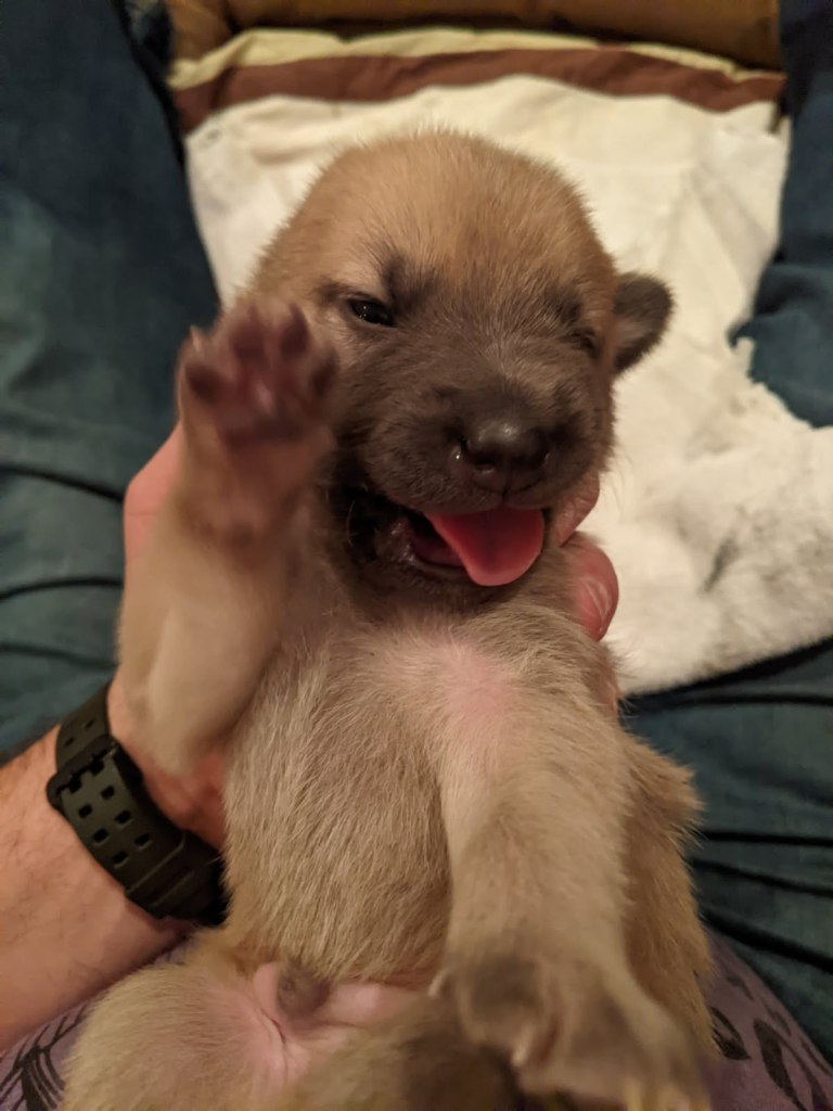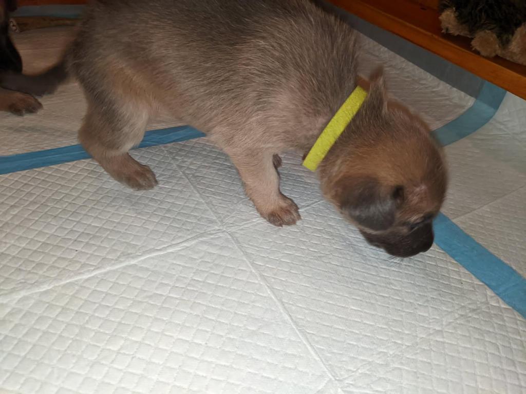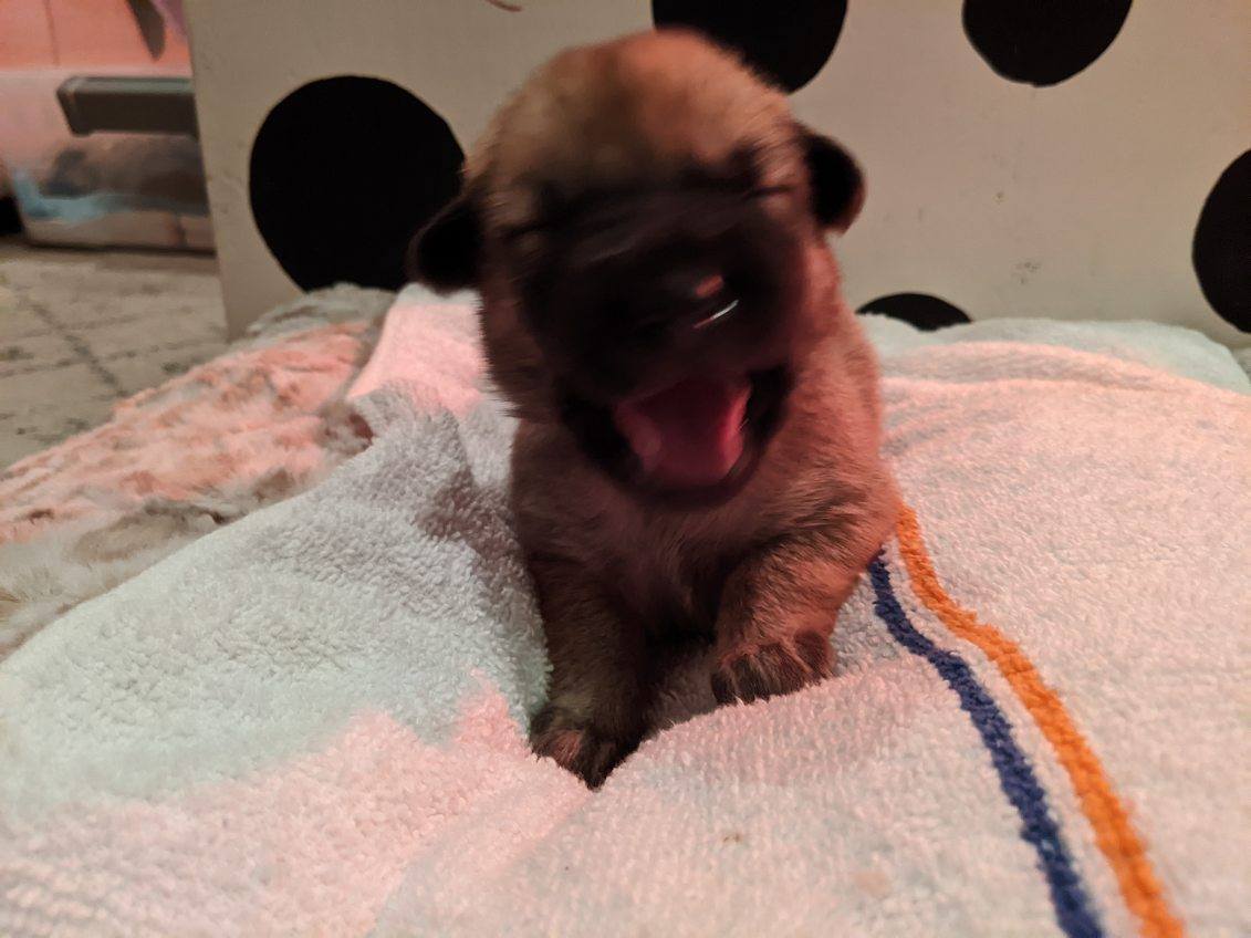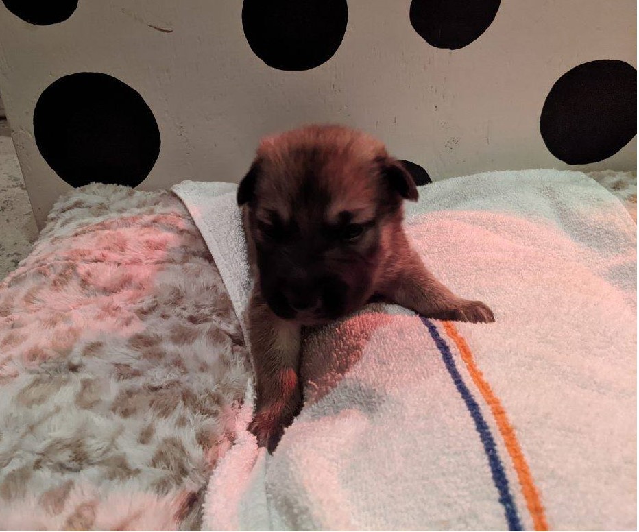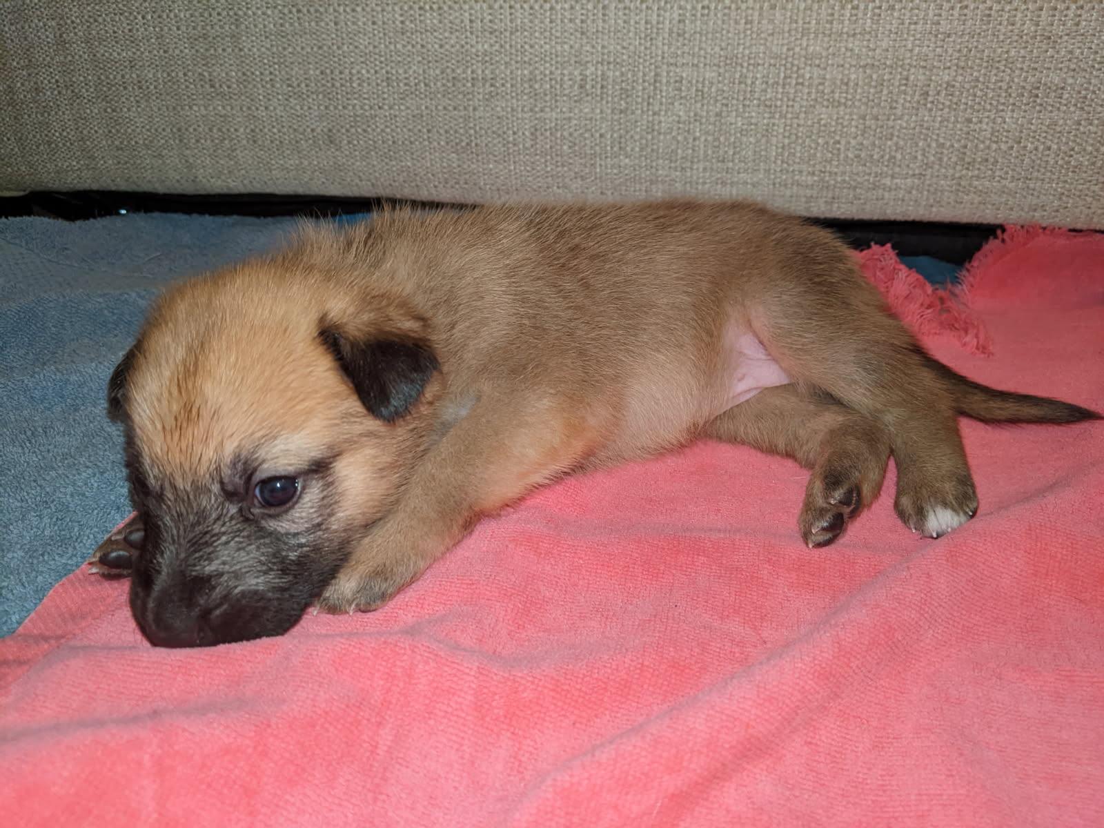 Eyes are open and they are on the move! Please forgive the sometimes-blurry photos but they are hard to pin down unless they are asleep. Weight gains have been very good. We are starting to see which pups tend to be more laid back and who the adventurous souls are. Here are their individual photos and stats, followed by a gallery of fun photos. We are still looking for a couple of forever homes.