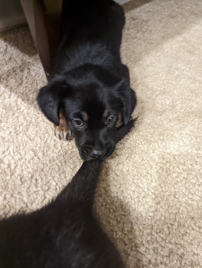 JJ was born via C-Section and weighed in at 12.5 oz. She is named in honor of Jennifer Doudna, CRISPR research pioneer. Due to the C-section and anesthesia, Birdie did not accept her little pup right away. After a few days of diligent and creative work by her humans, Birdie became a devoted and loving mom.