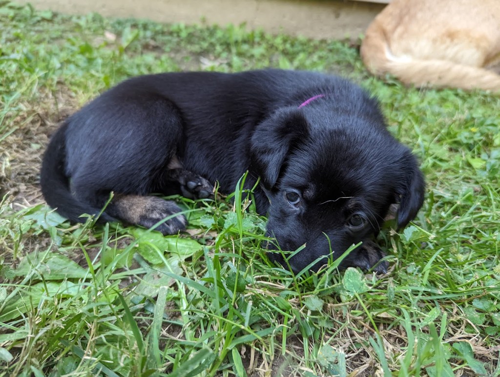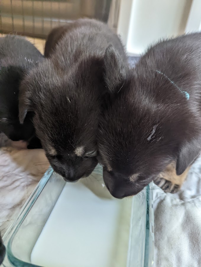 These pups have really grown! They have had many visitors and have had their first taste of the outdoors. That was very exciting! Their amazing mom, Guen, has even left the milk bar open, ouch! They are learning about using a litter box too.