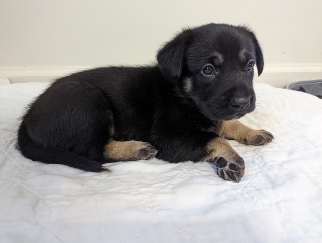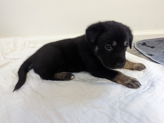 There are three males and two females and a real rarity in the Chinook world being all black and tan!